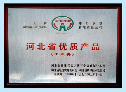 The Three Person brand CCM square and rectangular bilits were awarded the Quality Products of Hebei.