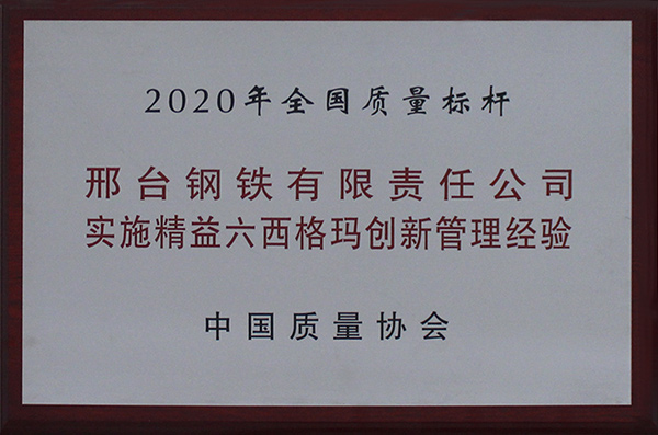 2020年10月21日,由中國質(zhì)量協(xié)會主辦,山西省工業(yè)和信息化廳、太原市人民政府承辦的“2020年全國質(zhì)量標(biāo)桿山西行交流活動”在山西省太原市舉辦,在本次交流活動上邢鋼《實(shí)施精益六西格瑪創(chuàng)新管理經(jīng)驗》被授予“2020年全國質(zhì)量標(biāo)桿”。
