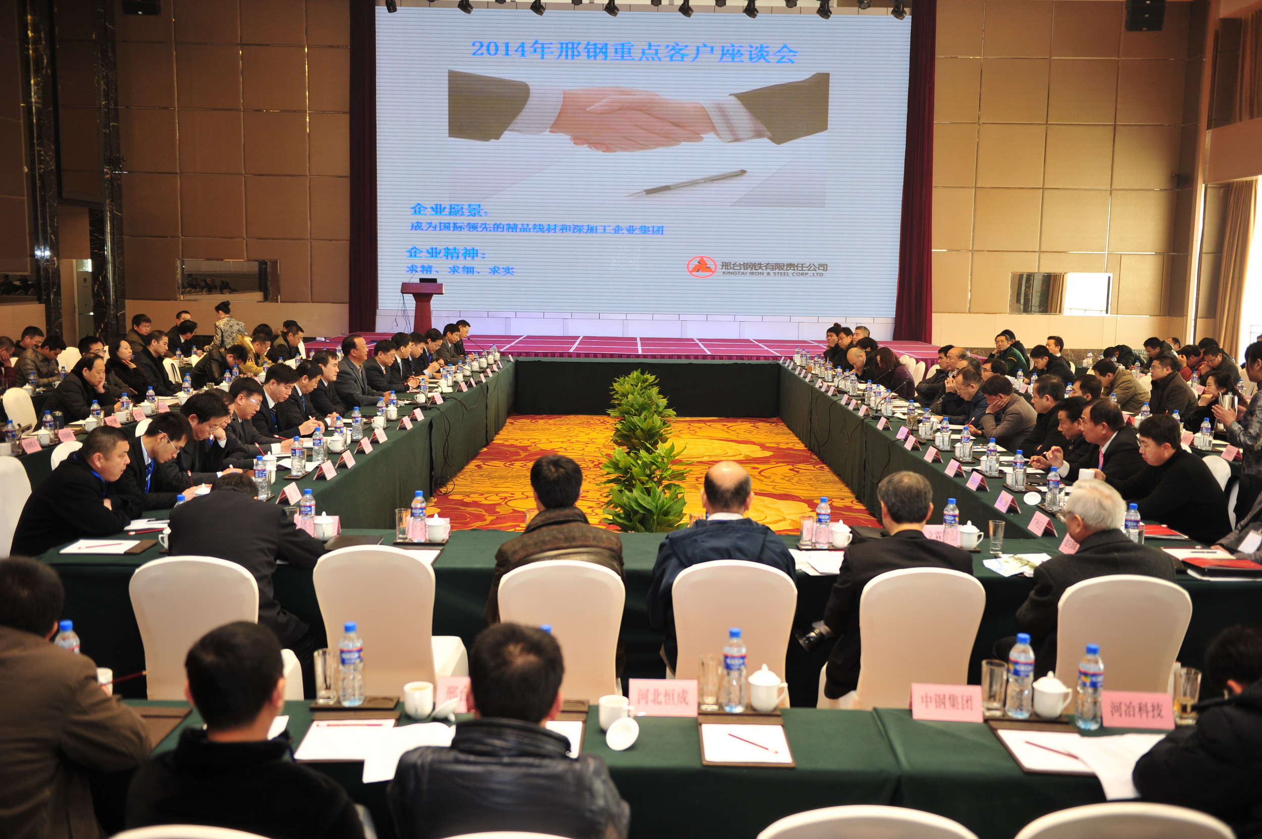 為進一步加強業(yè)務(wù)溝通與交流,傾聽廣大客商對邢鋼產(chǎn)品的意見和建議,1月6日,公司在辰光酒店召開2014年重點客戶座談會。公司董事長袁世臻、總經(jīng)理張永藏、副總經(jīng)理王臣良、劉宏偉、侯月華、總工程師王郢及相關(guān)處室負責(zé)人出席了會議。來自國內(nèi)外包括日本、韓國、臺灣地區(qū)在內(nèi)的110家生產(chǎn)制造商的210余名貿(mào)易商代表、客戶代表參加了會議。