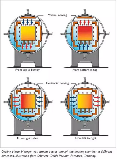 •冷卻將通過大量注入惰性氣體(最常見的是氮?dú)猓┻M(jìn)入加熱室,變換方向,達(dá)到以前在爐子編程時(shí)選擇的過壓。最大超壓是每個(gè)爐的標(biāo)稱特性。