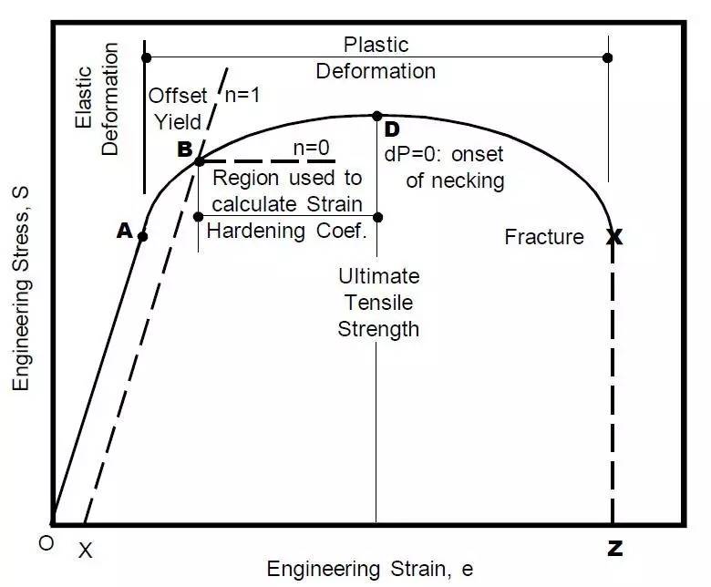 拉伸試驗(yàn)是最采用的力學(xué)性能測(cè)試試驗(yàn),通過(guò)拉伸曲線我們可以獲得一系列的材料力學(xué)性能參數(shù)。那么從拉伸曲線上我們參提取出來(lái)哪些有用的信息呢?