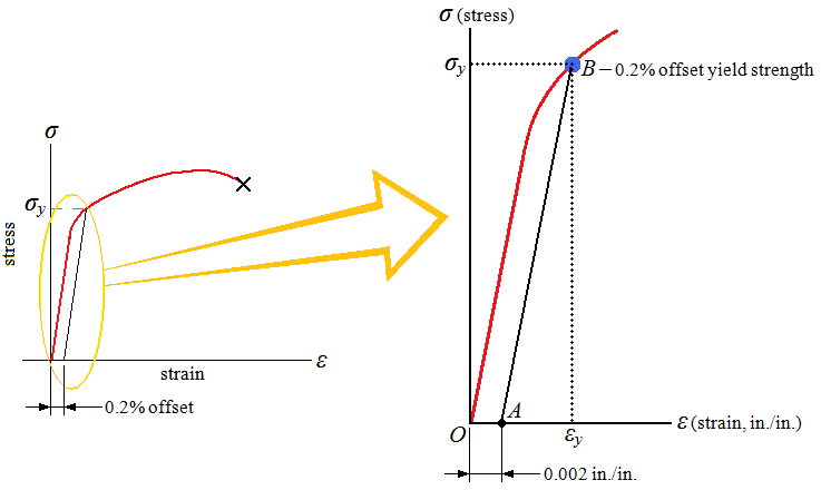 常用的金屬一般為多晶體金屬,因此工程實(shí)際金屬起始塑性變形具有非同時(shí)性特征。在拉伸曲線上具體反映就是沒(méi)有明顯的屈服點(diǎn)。那么,如何界定工程實(shí)際金屬發(fā)生了塑性變形呢?殘留塑性變形量就成為重要的依據(jù),人們通常人為地把一定殘留塑性變形量時(shí)工程金屬對(duì)應(yīng)的抗力作為屈服強(qiáng)度,也稱(chēng)為條件屈服強(qiáng)度。這很好理解,沒(méi)有明顯的塑性屈服點(diǎn),就沒(méi)有明顯的屈服強(qiáng)度,要想知道實(shí)際金屬的屈服強(qiáng)度就需要一個(gè)判定條件,因此就有了條件屈服強(qiáng)度。對(duì)于不同的金屬構(gòu)件,其條件屈服強(qiáng)度對(duì)應(yīng)的殘留變形量不同。對(duì)于一些苛刻的金屬構(gòu)件,其殘留變形量規(guī)定應(yīng)較小,而普通金屬構(gòu)件條件屈服時(shí)對(duì)應(yīng)的殘留變形量則較大。常用的殘留變形量為0.01%,0.05%, 0.1%,0.2%,0.5%和1.0%等。