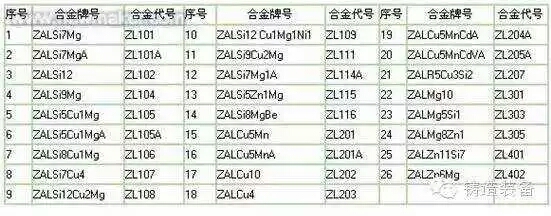 鋁合金按照加工方法的不同分為兩大類,即壓力加工鋁合金和鑄造鋁合金(分別以YL和ZL表示)。在鑄造鋁合金中又依主要加入的合金元素的不同而分為四個系列,即鑄造鋁硅合金、造鋁銅合金、鑄造鋁鎂合金和鑄造鉛鋅合金(分別以 ZL1X X,ZL2 X X,ZL3 X X和ZL4 X X表示),在每個系列中又按照化學(xué)成分及性能的不同而分為若干牌號。表3中列出了鑄造鋁合金國家標準所包括的幾種鋁合金的牌號。