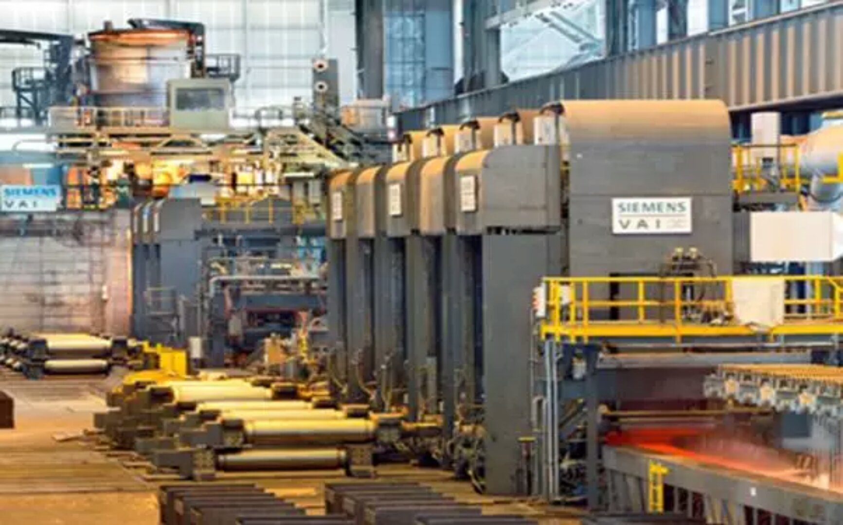 注:從左至右分別為:連鑄機(jī)、均熱爐、熱連軋機(jī)組、層流冷卻。