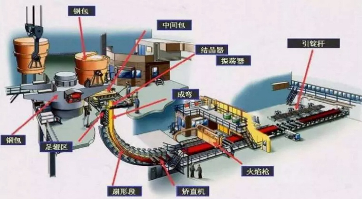 連鑄:連續(xù)鑄鋼(英文Continuous Steel Casting)的簡稱,可實(shí)現(xiàn)不間斷連續(xù)生產(chǎn)。與模鑄相比,連鑄技術(shù)具有提高金屬收得率、改善勞動環(huán)境、自動化程度高、鑄坯質(zhì)量好等顯著優(yōu)勢,現(xiàn)目前大多數(shù)鋼廠都采用連鑄澆注,可生產(chǎn)方坯、圓坯、板坯等。