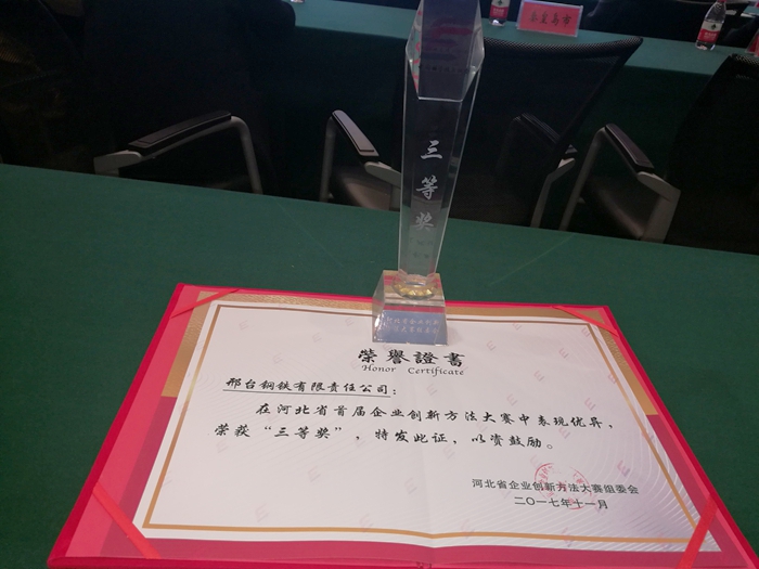 11月14日,“2017河北省企業(yè)創(chuàng)新方法大賽暨中國科協(xié)第二屆全國企業(yè)創(chuàng)新方法大賽”河北賽區(qū)比賽在滄州舉辦,本次大賽重點關注應用方法解決生產實際問題,共設一等獎一名,二等獎兩名,三等獎三名,近日傳來喜訊,邢鋼煉鋼廠冶煉維修車間電氣儀表作業(yè)區(qū)參加比賽獲得三等獎。