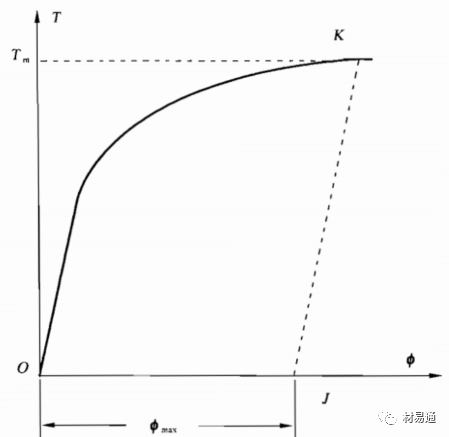 扭轉(zhuǎn)圖與拉伸試驗測定的應(yīng)力—應(yīng)變曲線相似,這是因為在扭轉(zhuǎn)時試件的形狀不變,其變形始終是均勻的,即使進(jìn)入塑性變形階段,扭矩仍隨變形的增大而增加,直至試件斷裂。