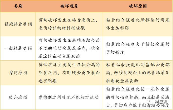 當(dāng)摩擦副相對滑動時由于粘著效應(yīng)所形成結(jié)點(diǎn)發(fā)生剪切斷裂,被剪切的材料或脫落成磨屑,或由一個表面遷移到另一個表面,此類磨損稱為粘著磨損。