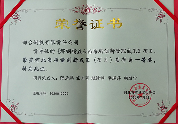 為激發(fā)萬眾創(chuàng)新熱情,提高創(chuàng)新質(zhì)量,促進創(chuàng)新交流,河北省質(zhì)量文化協(xié)會于2020年7 月2日至3日在石家莊召開了河北省第三屆質(zhì)量創(chuàng)新成果(項目)發(fā)布會。經(jīng)申報材料評審,大會發(fā)表,專家評審,邢臺鋼鐵有限責(zé)任公司申報的4項質(zhì)量創(chuàng)新成果(項目)全部獲獎。