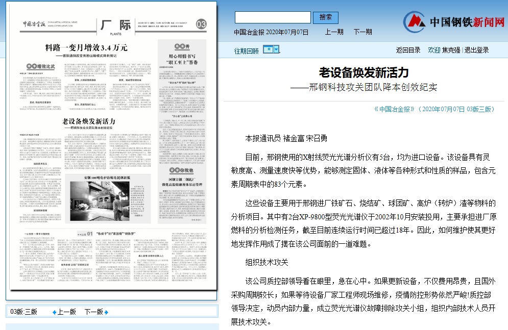 這些設(shè)備主要用于邢鋼進(jìn)廠鐵礦石、燒結(jié)礦、球團(tuán)礦、高爐(轉(zhuǎn)爐)渣等物料的分析項目。其中有2臺XP-9800型熒光光譜儀于2002年10月安裝投用,主要承擔(dān)進(jìn)廠原燃料的分析檢測任務(wù),截至目前連續(xù)運行時間已超過18年。因此,如何維護(hù)使其更好地發(fā)揮作用成了擺在該公司面前的一道難題。