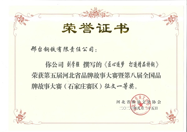 講好品牌故事,弘揚(yáng)邢鋼文化——邢鋼參加河北省品牌故事大賽創(chuàng)佳績