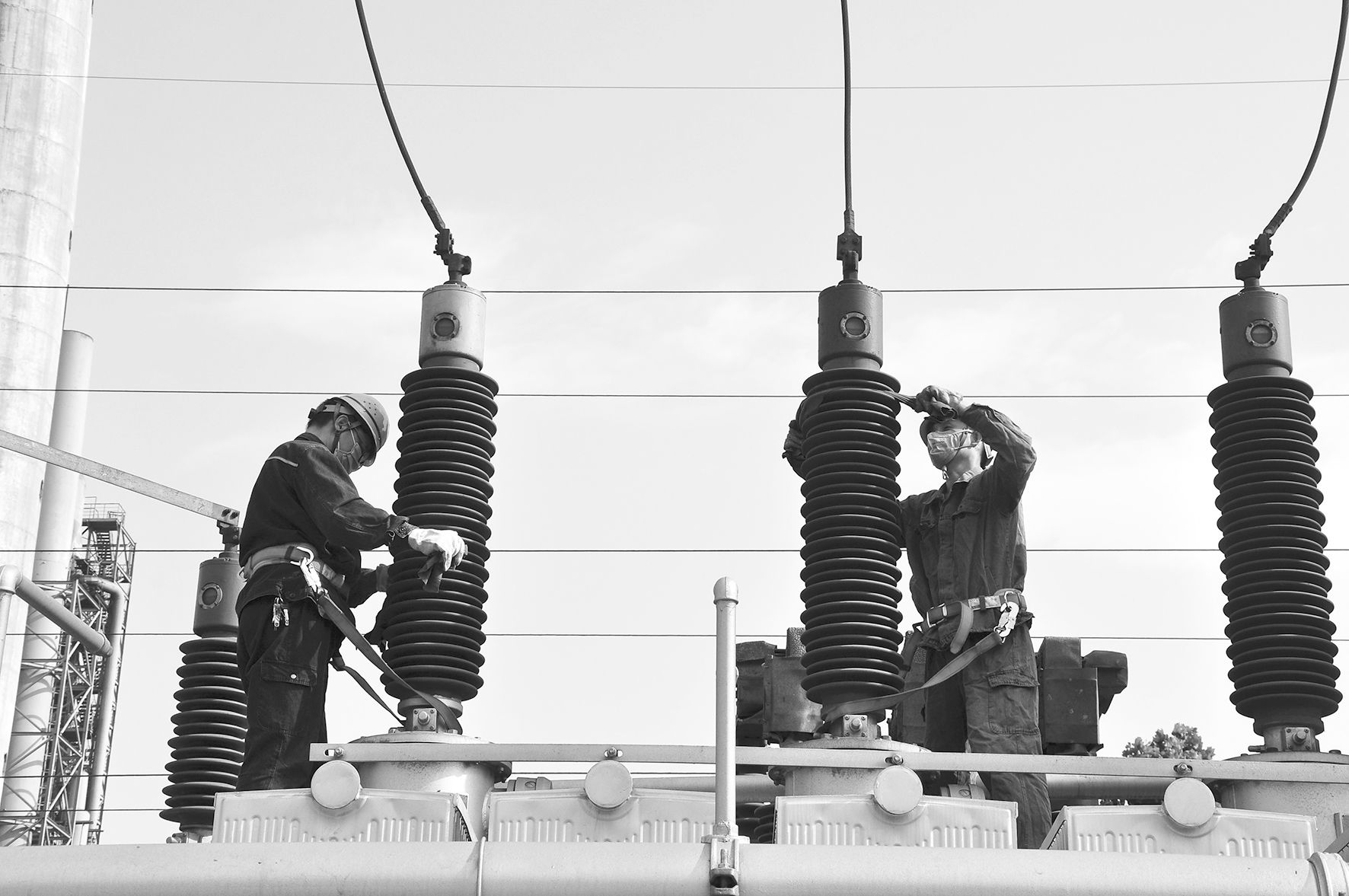 為提高供電可靠性,邢鋼開展年度供電春防檢修工作。本次檢修維護(hù)設(shè)備多、范圍廣,邢鋼指定經(jīng)驗豐富、責(zé)任心強(qiáng)的員工擔(dān)任各組監(jiān)護(hù)人,嚴(yán)把檢修安全關(guān)和檢查清掃質(zhì)量關(guān)。同時,邢鋼還利用此次清掃檢修機(jī)會,對變壓器油枕內(nèi)部氣囊處氣體進(jìn)入進(jìn)行專項處理,消除設(shè)備安全運(yùn)行隱患。圖為邢鋼職工對110千伏線路進(jìn)行檢查。(周勇/攝 郭林偉/文)