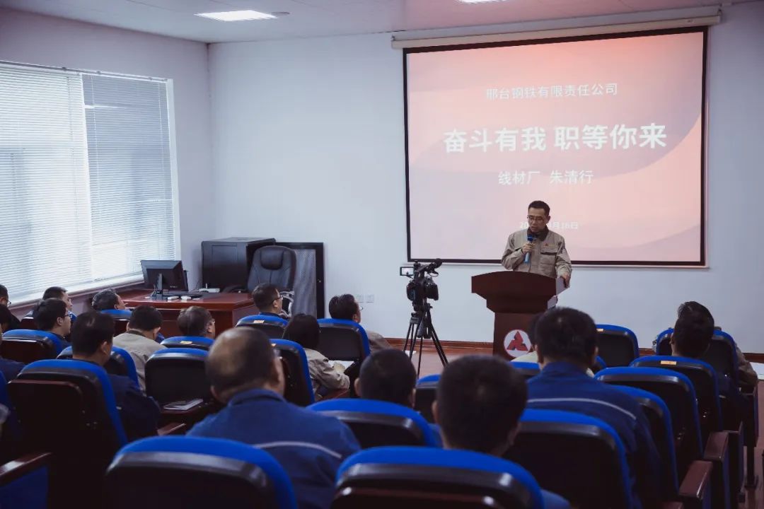 為加強(qiáng)員工隊(duì)伍建設(shè),提供人才晉升渠道,實(shí)施動態(tài)儲備,4月16日,邢鋼組織開展了“奮斗有我,職等你來”主題演講會,倡議廣大青年員工立足崗位比奉獻(xiàn),積極為公司發(fā)展諫言獻(xiàn)策,并激勵(lì)他們錘煉品德、勇于創(chuàng)新、實(shí)學(xué)實(shí)干,和公司一起成長,成為邢鋼事業(yè)發(fā)展的中堅(jiān)力量。公司董事長兼黨委書記張育明等公司領(lǐng)導(dǎo)及各單位主管領(lǐng)導(dǎo)參與了本次活動。