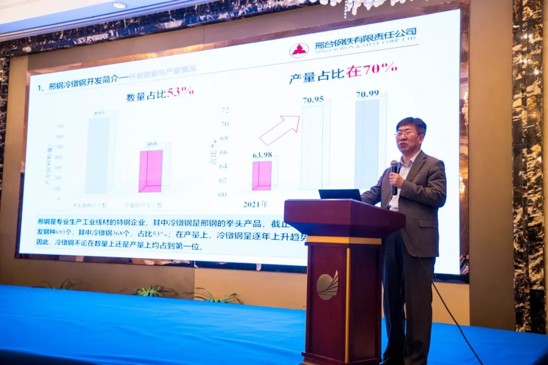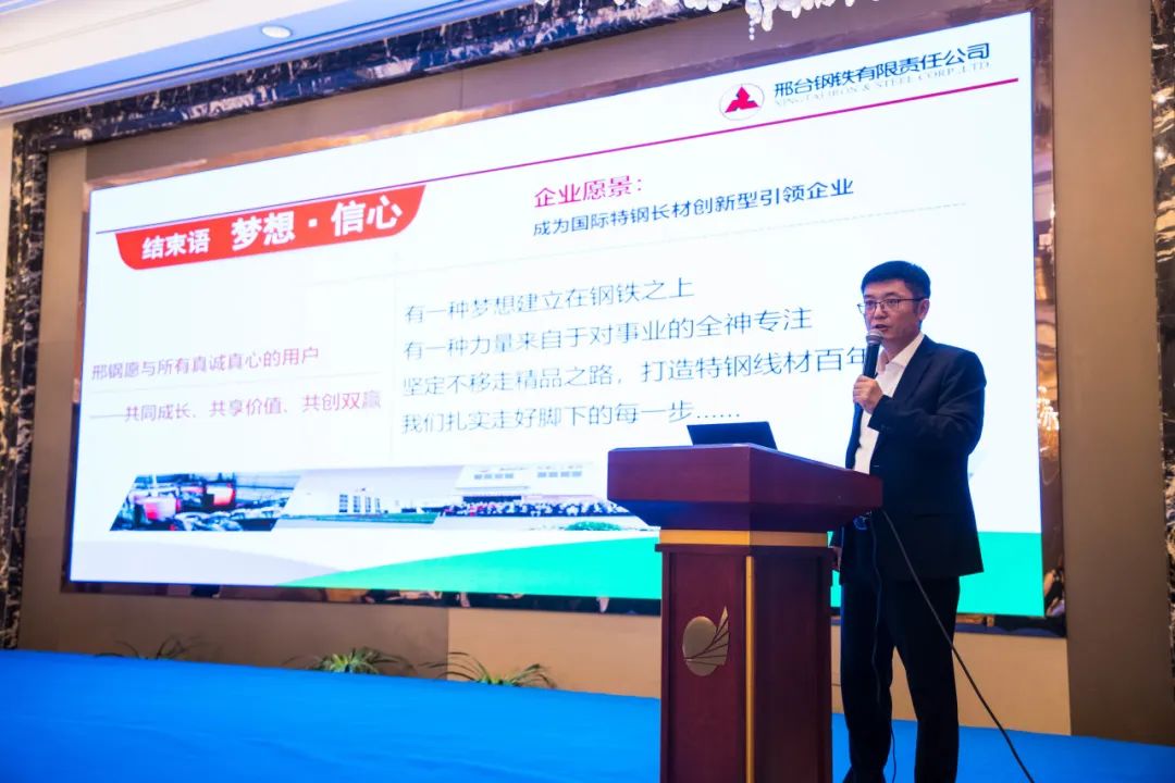 期間,邢鋼總經(jīng)理彭世丹作了《新規(guī)劃引領(lǐng)新未來,新邢鋼再鑄新輝煌》報(bào)告,邢鋼董事長(zhǎng)助理、總工程師田新中作了《緊固件用鋼的開發(fā)和質(zhì)量控制技術(shù)》報(bào)告。浙江國(guó)檢檢測(cè)技術(shù)公司副總經(jīng)理王慧、晉億公司質(zhì)量技術(shù)部經(jīng)理張勇、中化創(chuàng)新研究院雙碳咨詢事業(yè)部總經(jīng)理劉通、上善院研發(fā)工程師楊現(xiàn)亮、南京工程學(xué)院教授趙秀明、上海納特汽車標(biāo)準(zhǔn)件公司研發(fā)總監(jiān)李軍正分別進(jìn)行了行業(yè)技術(shù)報(bào)告分享。