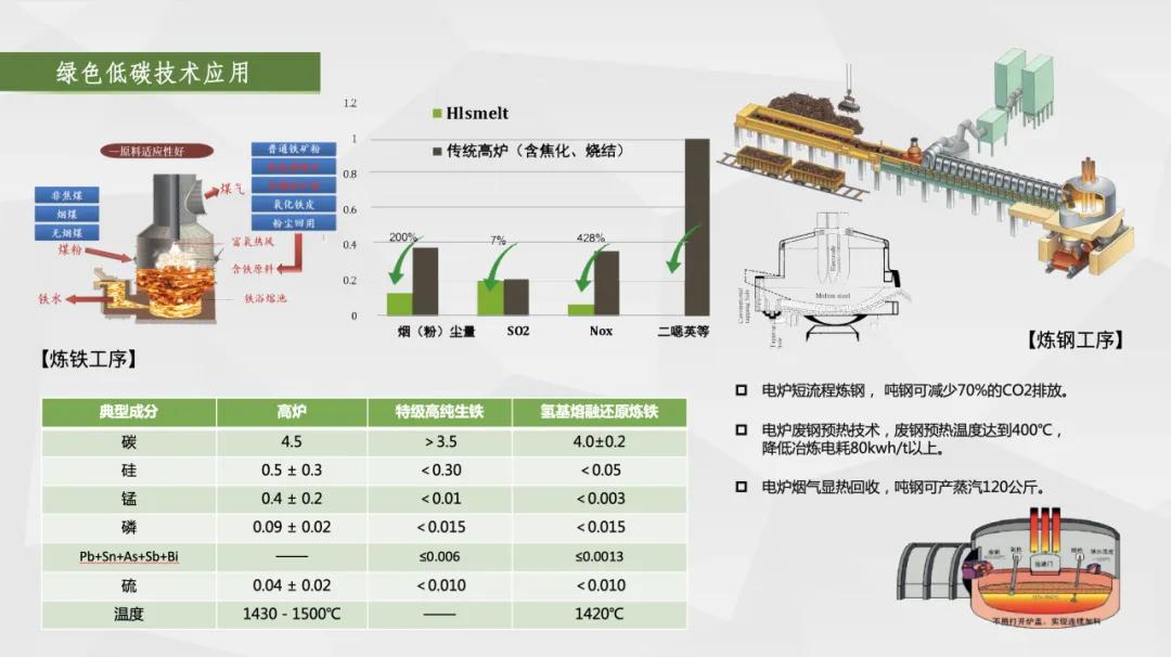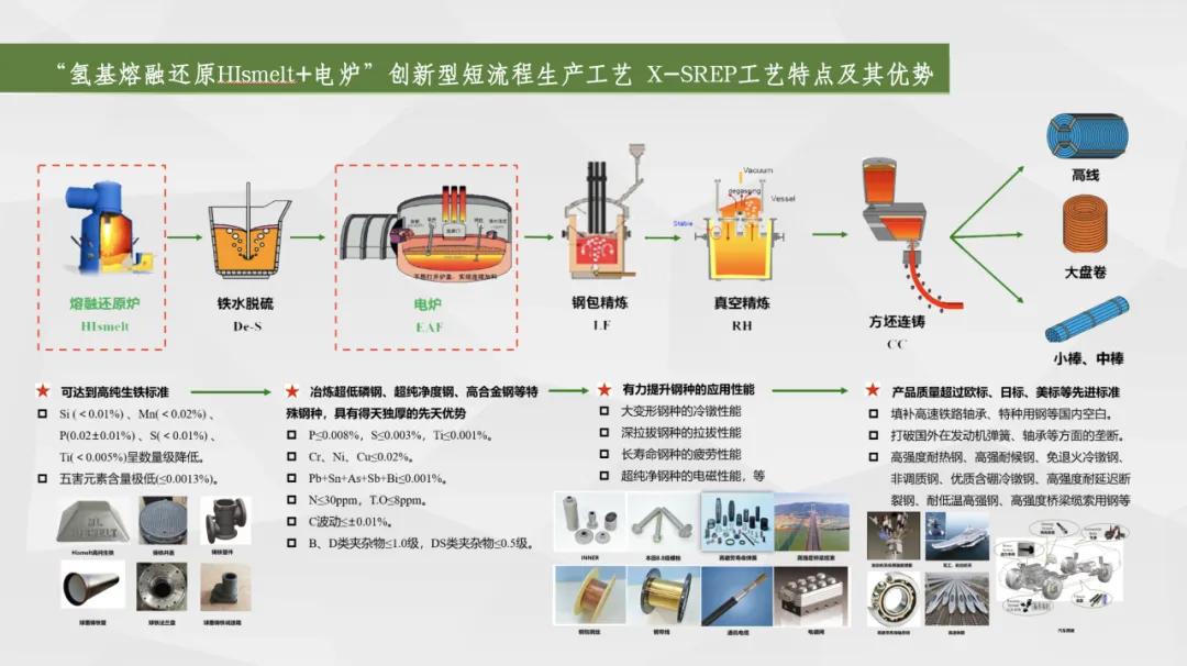 一是布局“碳達(dá)峰、碳中和”,實(shí)現(xiàn)綠色化,引領(lǐng)品牌可持續(xù)發(fā)展。采用的“熔融還原+電爐煉鋼”短流程工藝,取消了燒結(jié)、球團(tuán)、焦化、預(yù)還原等工藝環(huán)節(jié),為世界首創(chuàng);和長流程工藝相比,預(yù)計(jì)可減少二氧化硫、氮氧化物排放38%,減少顆粒物排放89%,建廠即達(dá)到A級企業(yè)標(biāo)準(zhǔn),實(shí)現(xiàn)綠色冶金,對我國乃至世界鋼鐵行業(yè)發(fā)展具有創(chuàng)新性和引領(lǐng)示范的意義,是鋼鐵行業(yè)綠色轉(zhuǎn)型的典范。