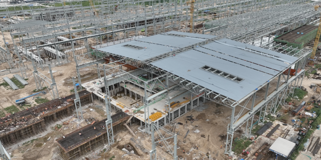 走在項目現場,隨處可見矗立的鋼結構和封頂的建筑主體。項目主要部分從西向東分別是煉鐵區(qū)域、煉鋼區(qū)域和軋鋼區(qū)域,項目鋼結構工程已全面鋪開。