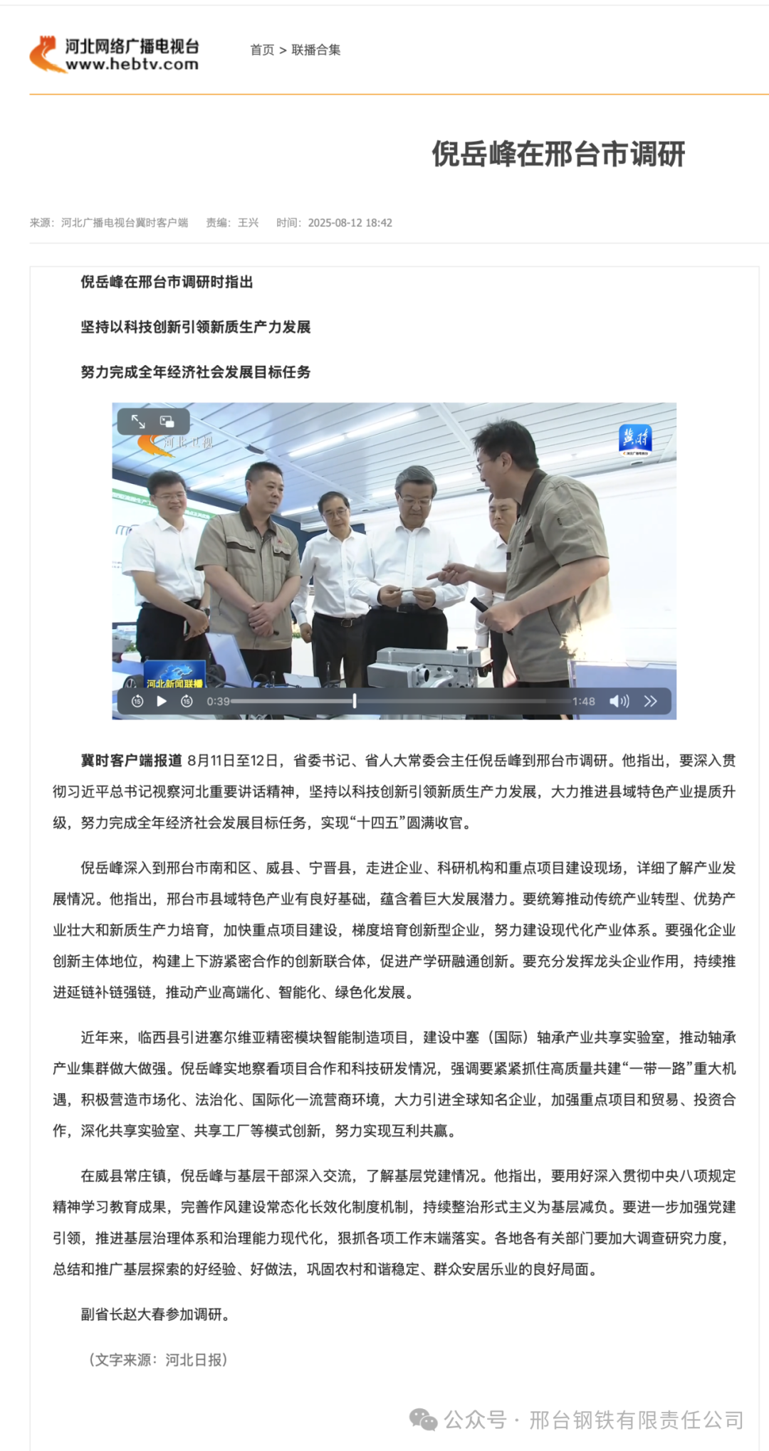 河北新聞聯(lián)播:倪岳峰在邢臺(tái)市調(diào)研