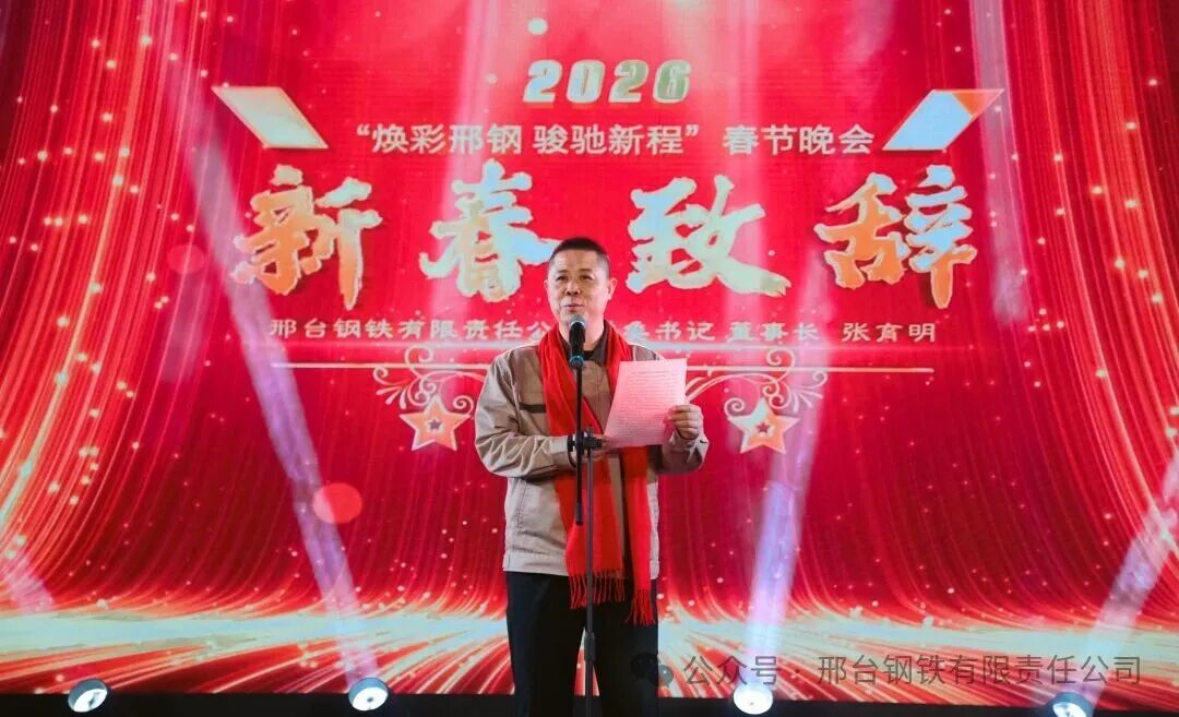 新征程,新目標(biāo),新跨越。2月6日,公司在會(huì)議中心舉辦“煥彩邢鋼,駿馳新程”2026年新春聯(lián)歡會(huì)。公司黨委書記、董事長(zhǎng)張育明攜公司全體中高層領(lǐng)導(dǎo)與2025年受表彰的先進(jìn)個(gè)人、員工代表歡聚一堂,共話邢鋼大業(yè),喜迎丙午年新春。
